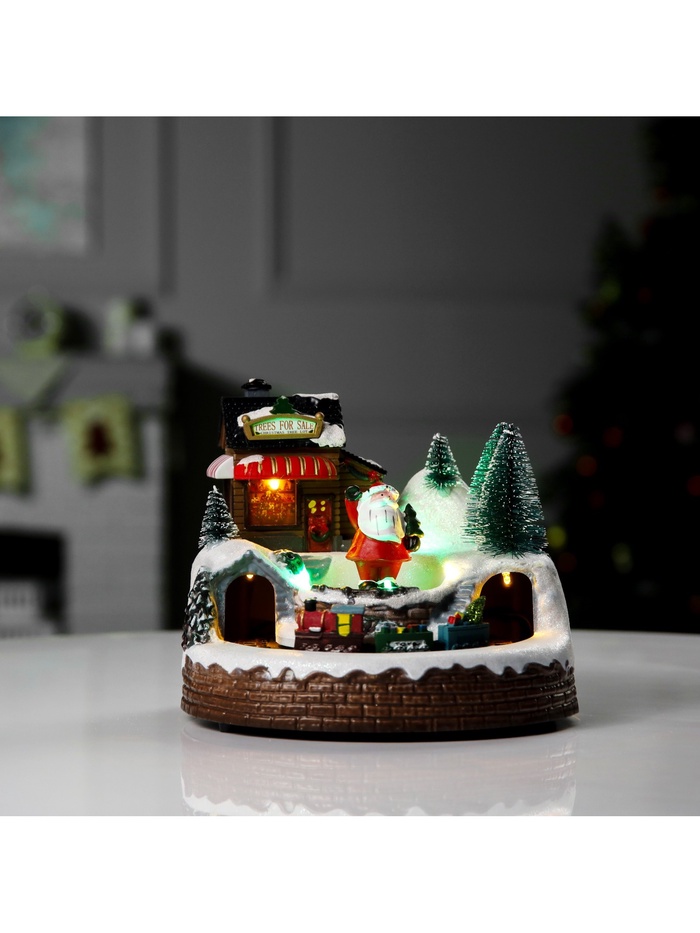 Светодиодная фигура «Поезд и Дед Мороз» 20×20×16 см, полистоун, батарейки ААх3 (не в комплекте), USB, свечение тёплое белое