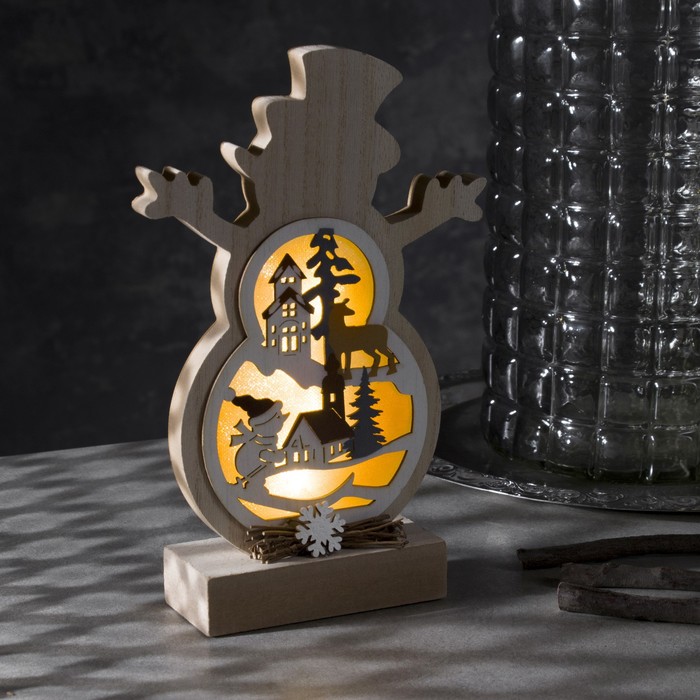 Светодиодная фигура «Снеговичок» 12×23×5 см, дерево, батарейки АААх2 (не в комплекте), свечение тёплое белое