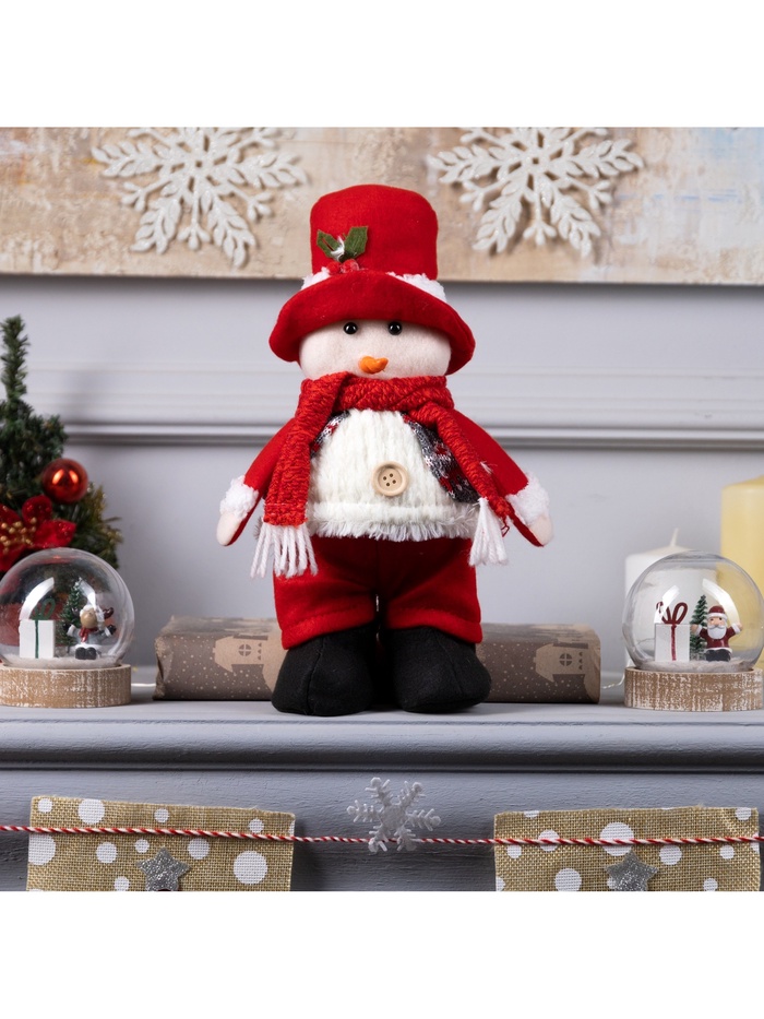 Светодиодная фигура «Снеговик» 13×30×8 см, текстиль, батарейки LR1130×3 (в комплекте), свечение тёплое белое