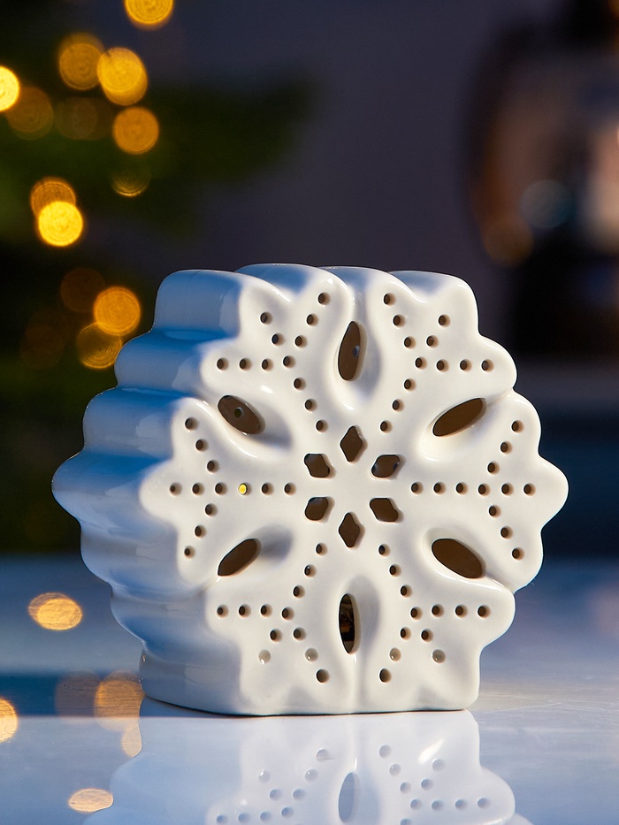 Керамическая снежинка — это не только красивый элемент декора, но и идеальный способ добавить уютный белый свет в ваш дом. Фигура в форме снежинки работает на батарейках, и может стать главным акцентом вашей зимней композиции или просто создать праздничную атмосферу на праздничном столе.