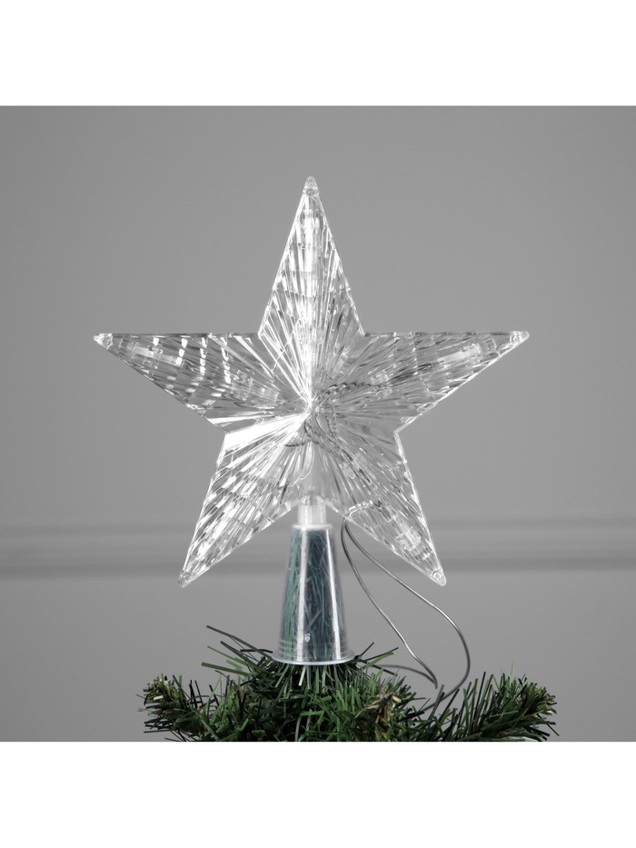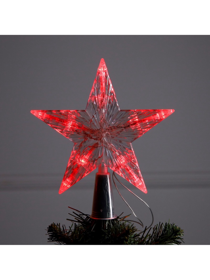 Эта верхушка выполнена из прозрачного пластика, что делает её лёгкой и удобной для установки на любую елку. Благодаря 10 светодиодам с красным свечением, она создает потрясающий визуальный эффект, который понравится как детям, так и взрослым. Верхушка работает от двух батареек типа AA (в комплект не входят), что обеспечивает её автономность и удобство использования.