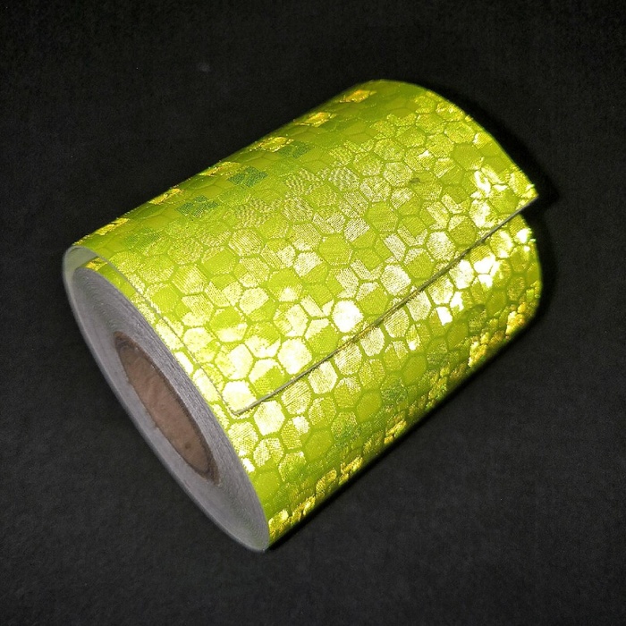 Светоотражающая самоклеящаяся лента представляет собой полимерную пленку со светоотражающими элементами. С одной ее стороны располагается клеевая основа с защитной бумажной полосой, убрав которую, ленту можно легко прикрепить к эксплуатируемой поверхности, а с другой — полимерное покрытие для улучшения ее качественных характеристик.