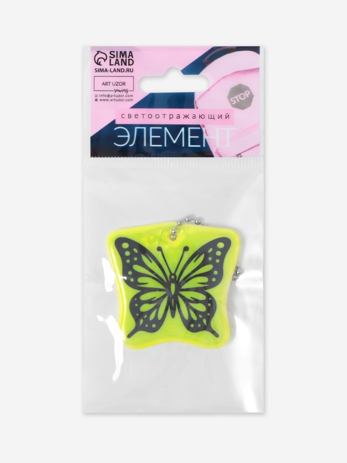 - Двусторонний световозвращающий брелок с изображением бабочки для высокой отражающей способности.
