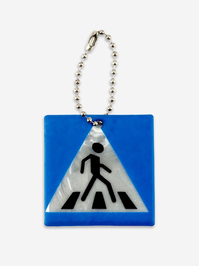 Светоотражающий брелок "Пешеходный переход" — важный элемент безопасности для городских жителей. В форме узнаваемого дорожного знака, он делает своего владельца заметнее на неосвещённых улицах.