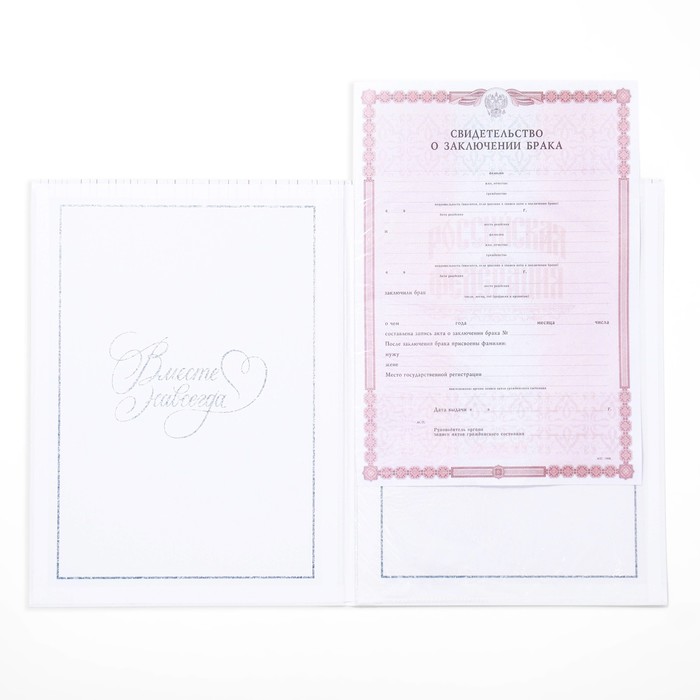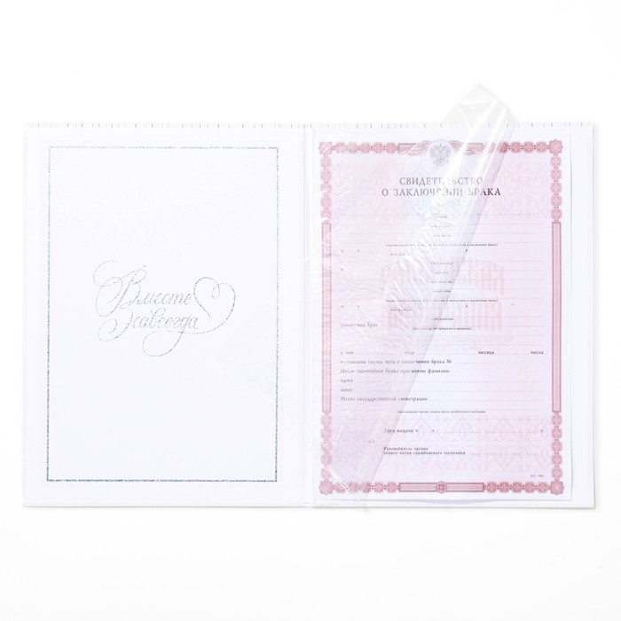 Обложка для свидетельства о заключении брака формата А4 станет лучшим обрамлением для вашего первого совместного документа. Красивая свадебная папка подчеркнёт всю торжественность бракосочетания, она будет напоминать вам о светлом дне свадьбы. В такой папке ваш семейный документ не помнётся, не испачкается и будет сохранять свою красоту всю жизнь. Оригинальный дизайн папки создаст отличное настроение новобрачным и станет хорошим презентом на свадьбу или её годовщину. Папка изготовлена ихз переплётного картона 1,25 мм. Формат обложки А4. Папка с файлом А4.