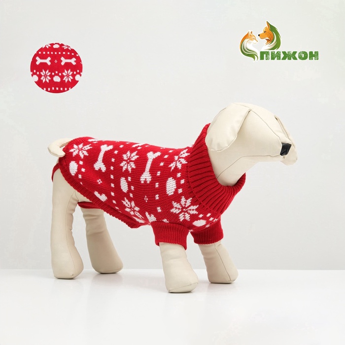 Свитер "Косточки-снежинки", размер 16 (ДС 35-39, ОГ 38-50, ОШ 24-28 см), красный