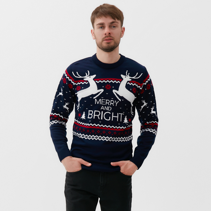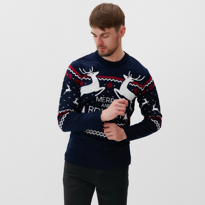 Свитер вязаный новогодний KAFTAN Family look, размер 42, синий