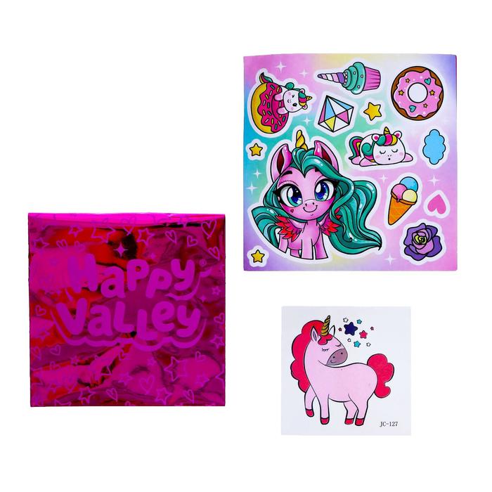 В наборе девочка найдёт куколку, мялку-анистресс, единорожку, тату, наклейки, браслет, очки, аксессуары для волос и новогоднюю гирлянду. Сколько всего интересного в одном наборе!