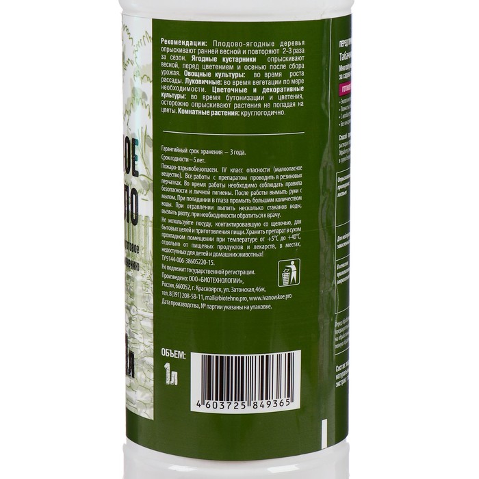Для борьбы с тлей, трипсами, паутинным клещем, слюнявкой-пенницей и другими сосущими 20-40 мл препарата развести в 1 л воды. Полученным раствором производить опрыскивание 1-3 раз в период вегетации. Для борьбы с щитовкой 10-20 мл препарата развести в 1 л воды. Полученным раствором производить опрыскивание 1-3 раз в течение двух недель. Для борьбы с бурой пятнистостью, мучнистой росой, ржавчиной и фитофторозом 10-20 мл препарата развести в 1 л воды. Полученным раствором производить опрыскивание до цветения растений. Для повышения эффективности пестицида в готовый раствор пестицида добавить «табачное мыло» из расчета 25-75 мл но 10 л раствора и перемешать. Обработку проводить в соответствии с инструкцией к пестициду.