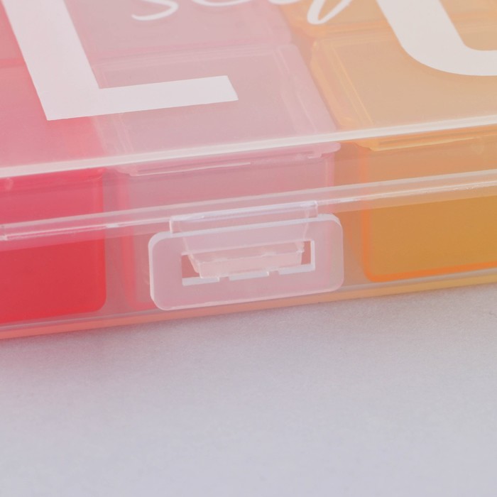 Компактный органайзер изготовлен из пластика безопасного для использования. Предназначен для хранения витаминов и таблеток.Контейнер для таблеток на день послужит компактной аптечкой, которую можно взять на работу,в отпуск,в командировку или для поездки загород на несколько дней. Контейнер органайзер для таблеток подойдет активным людям, которым необходимо принимать лекарства несколько раз в день или же несколько дней подряд вне дома.