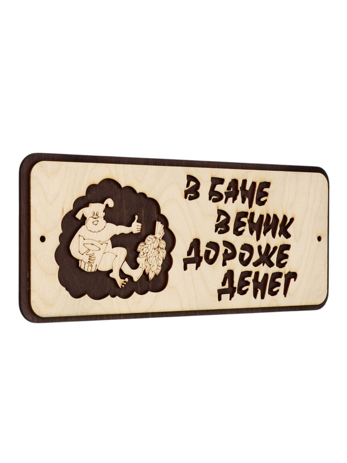 Табличка 2-слойная "В бане веник дороже денег" 30х12 см