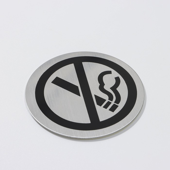 Табличка информационная "Не курить!", d=6 см, нержавеющая сталь, клейкая основа