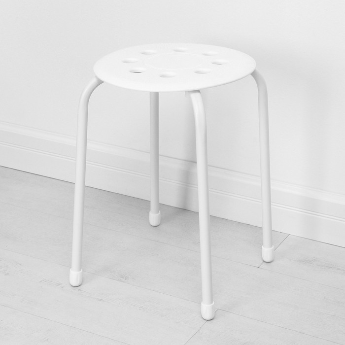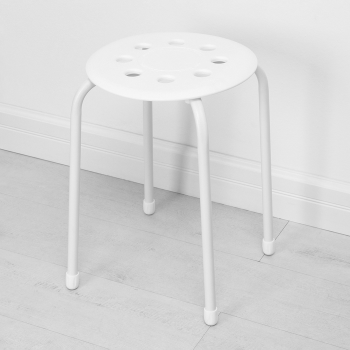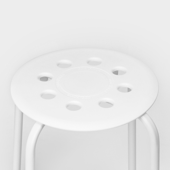 Табурет на четырёх опорах с пластиковым сиденьем. Материал сиденья лёгкий в чистке.