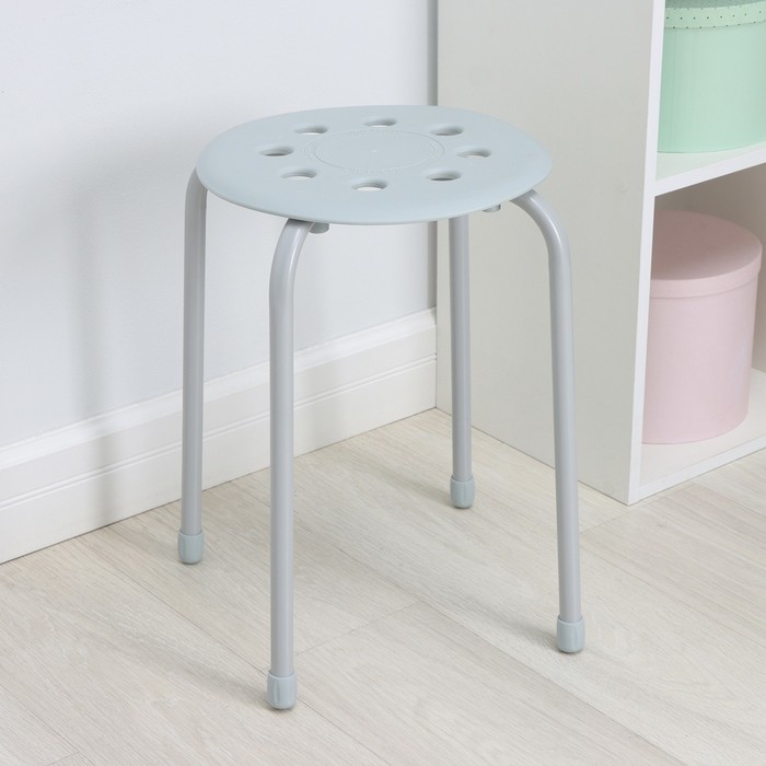 Табурет на четырёх опорах с пластиковым сиденьем. Материал сиденья лёгкий в чистке.