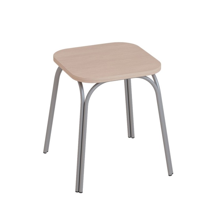 Каркас табурета выполнен из металла, обеспечивая прочность и стабильность.