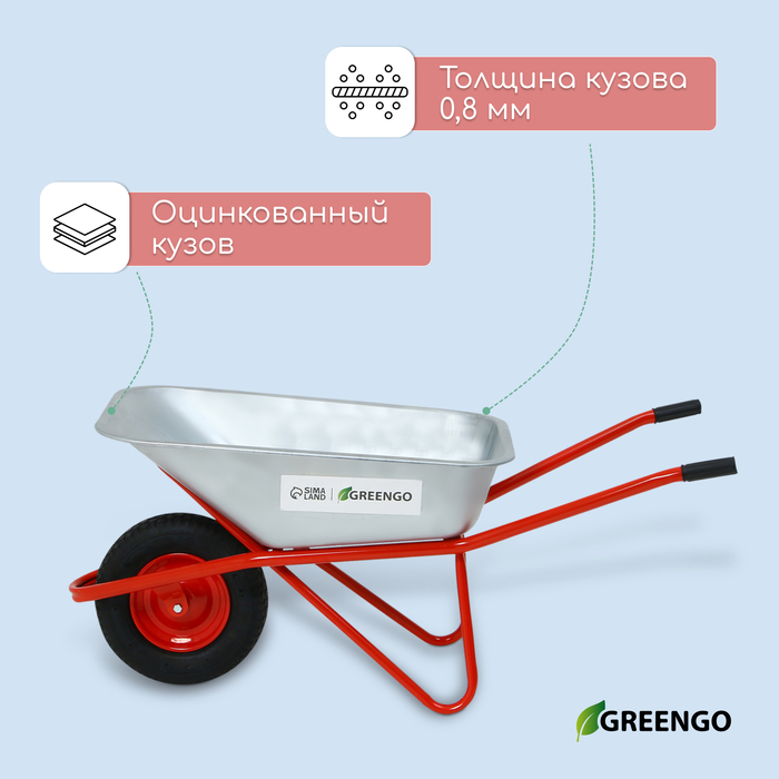 Строительная тачка Greengo с пневматическим колесом станет надёжным помощником на любой стройплощадке или садовом участке. Это универсальное решение для транспортировки различных грузов весом до 200 кг. Отличный выбор как для профессионалов, так и для домашних мастеров.