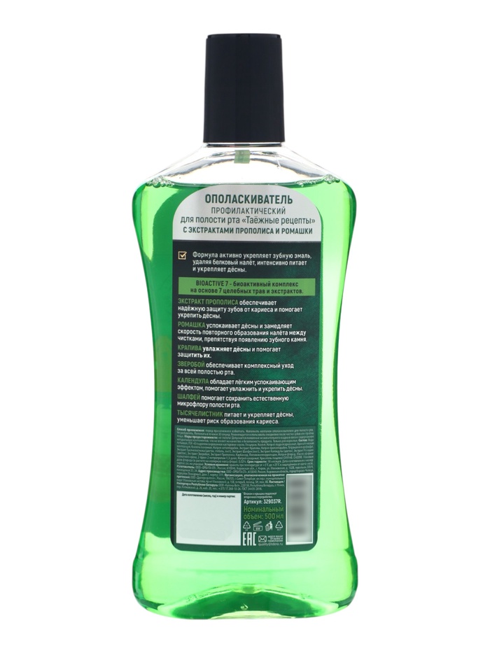 Таёжные рецепты ополаскиватель для рта с экстрактами прополиса и ромашки 500 мл