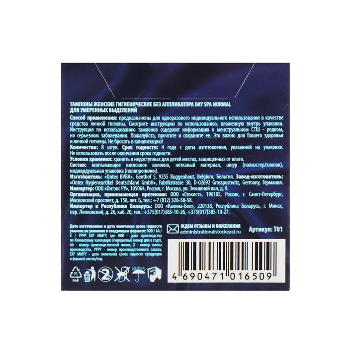 Тампоны "Day Spa" Normal, 8 имеют мягкое, экологически безопасное покрытие, равномерно распределяются внутри, идеально приспосабливаются к телу, обеспечивая полную защиту.