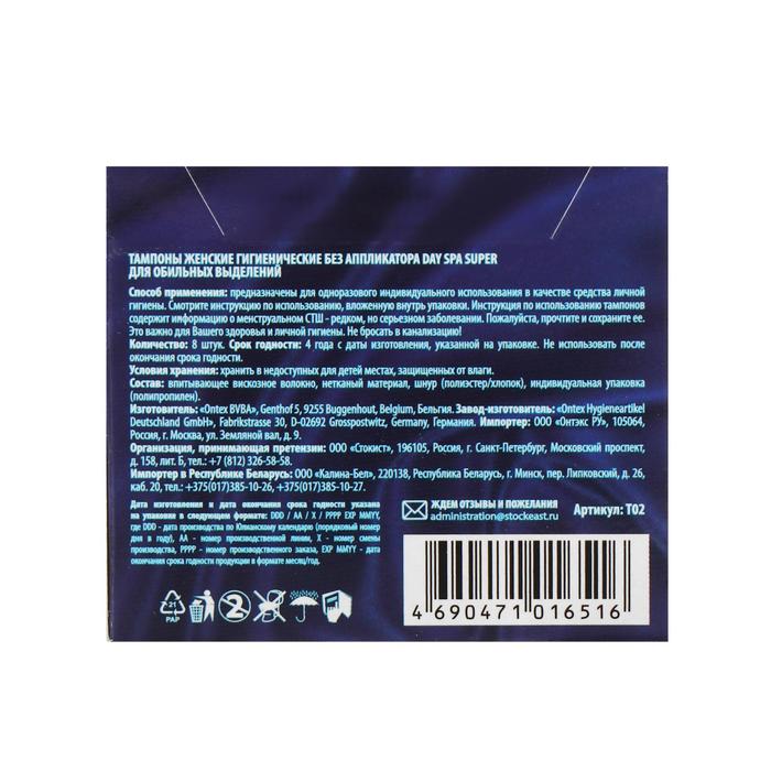 Тампоны «Day Spa» Super, 8 шт имеют мягкое, экологически безопасное покрытие, равномерно распределяются внутри, идеально приспосабливаются к Вашему телу, обеспечивая полную защиту.