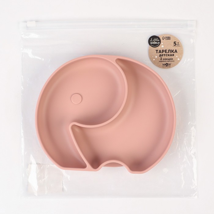 Тарелка детская 2 секции, «Слоник» M&B, 16х19,8х3, силикон, пыльная роза