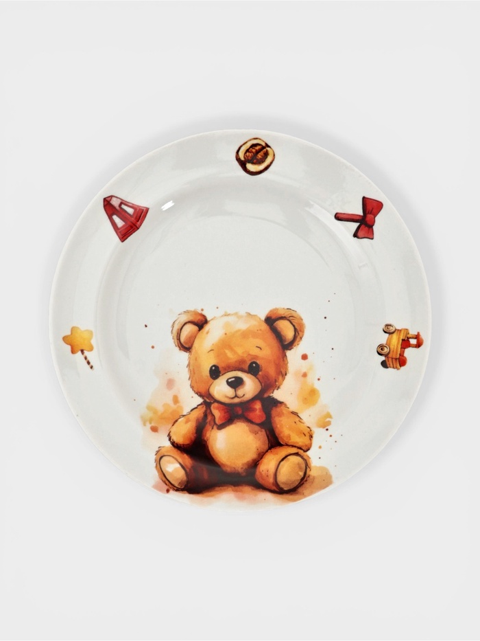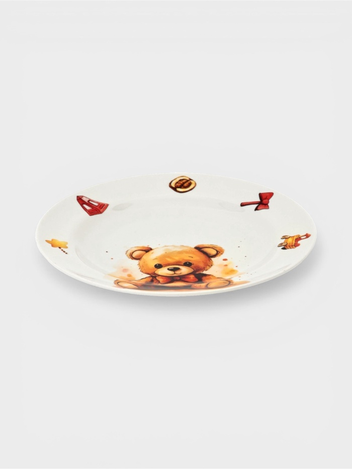 Тарелка предназначена для детей старше трёх лет. Рисунок с медвежонком создаёт «уютную атмосферу» за обеденным столом, превращая обычное кормление в маленькое путешествие в мир детских фантазий. Подарите малышу радость от красивой и удобной посуды!