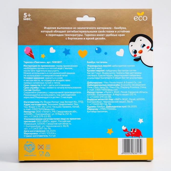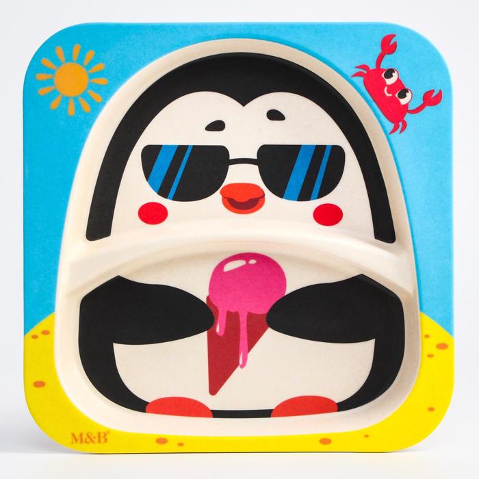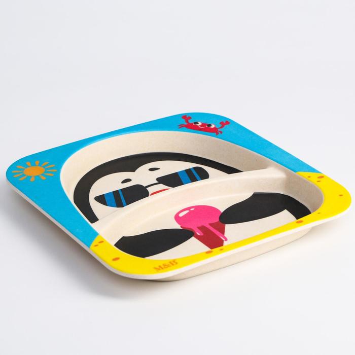 Тарелка детская из бамбука M&B «Пингвин», 2 секции