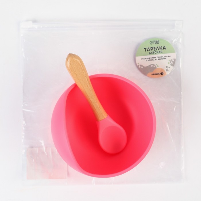 Тарелка детская на присоске, ложка, из силикона, розовая