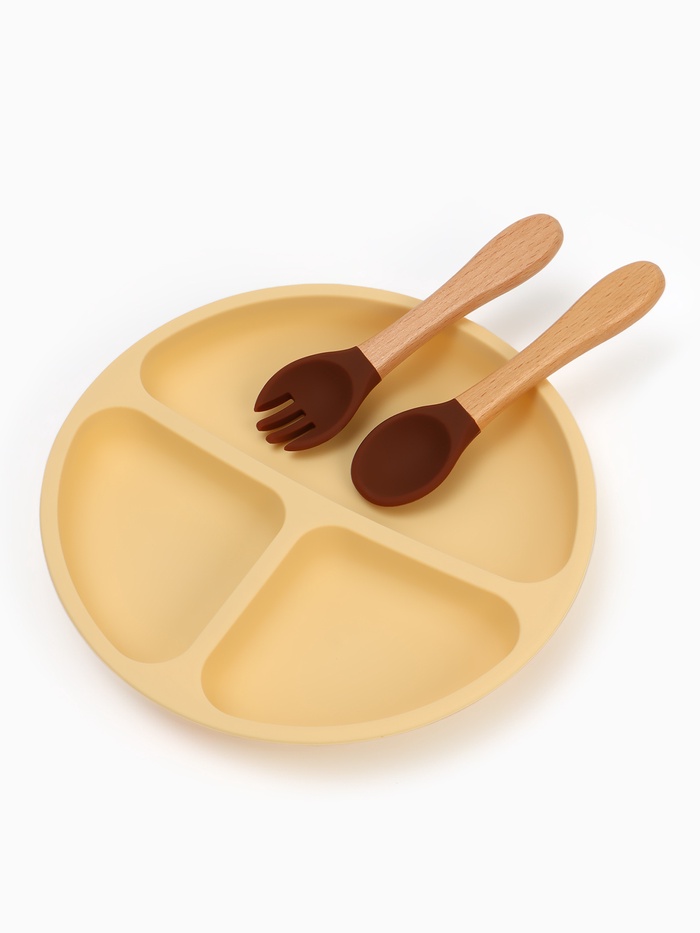 Тарелка детская секционная с ложкой и вилкой, 3 секции, молочный, Mum&Baby