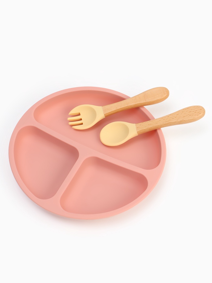 Тарелка детская секционная с ложкой и вилкой, 3 секции, розовый, Mum&Baby