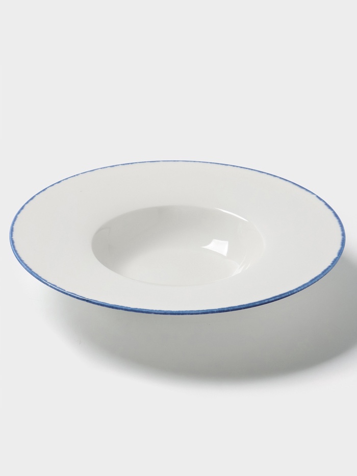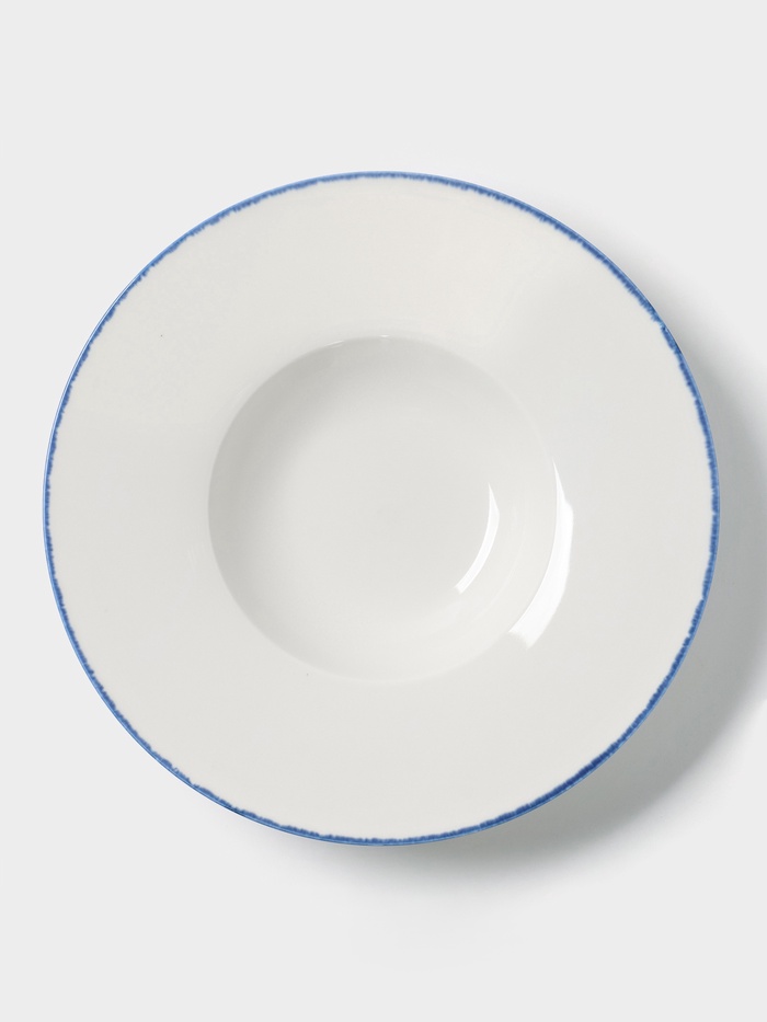 Тарелка выглядит стильно как в повседневном использовании, так и на праздничном столе. Прочный фарфор устойчив к сколам, а продуманная глубина делает её идеальной для жидких блюд. Полоса добавляет ненавязчивый акцент, не перегружая сервировку.