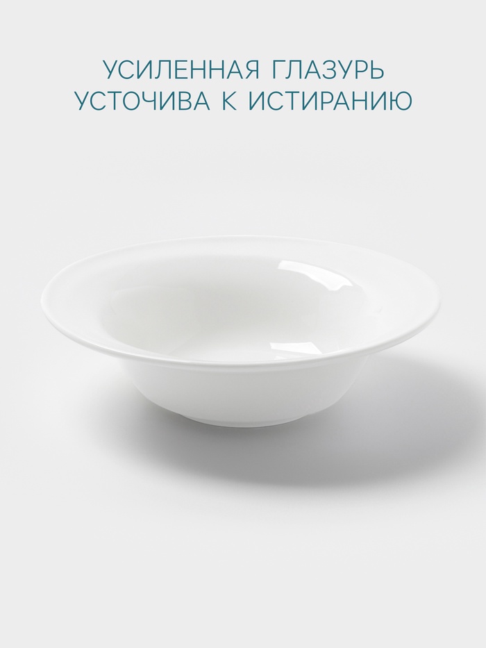 Изготовленная из высококачественного фарфора, эта тарелка обладает гладкой текстурой и белоснежным цветом, что делает её универсальной для любого стиля сервировки.