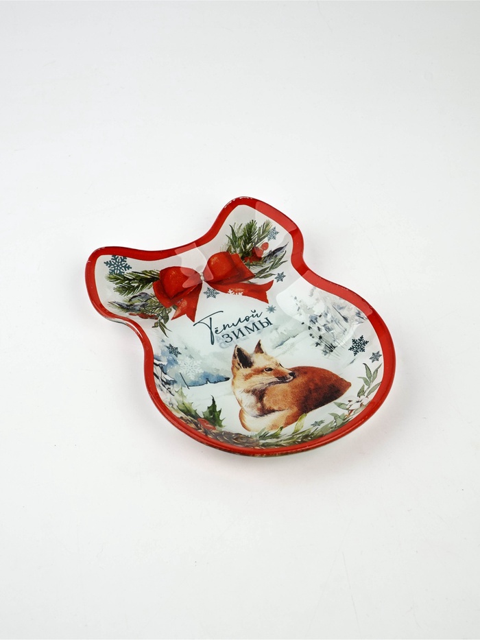 Новогодняя стеклянная тарелка в форме банта размером 13,5 x 18 см — это стильное и функциональное украшение для вашего праздничного стола.