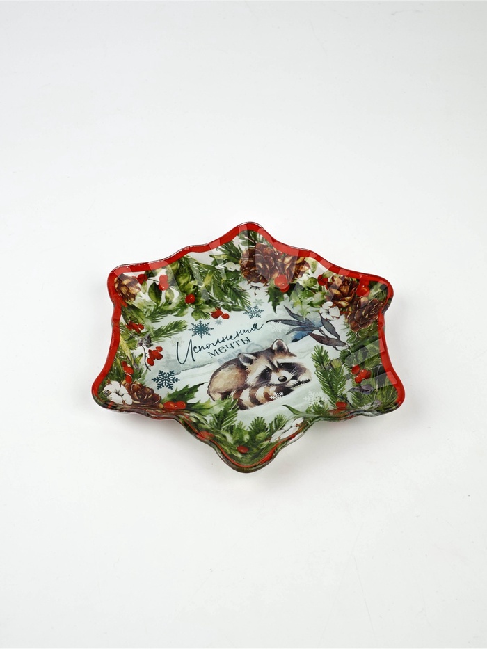 Стеклянная тарелка размером 19,5 см — отличный выбор для новогодних праздников.