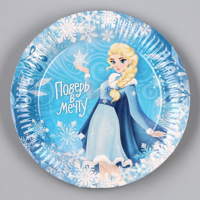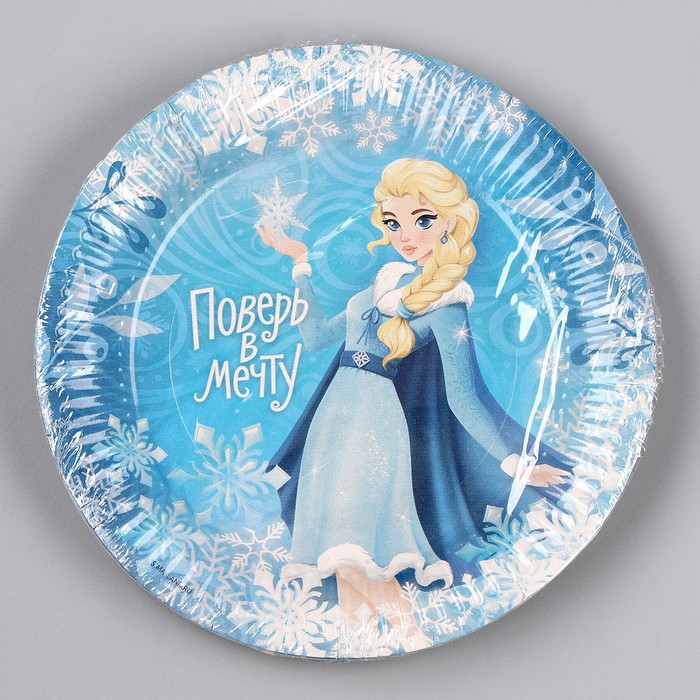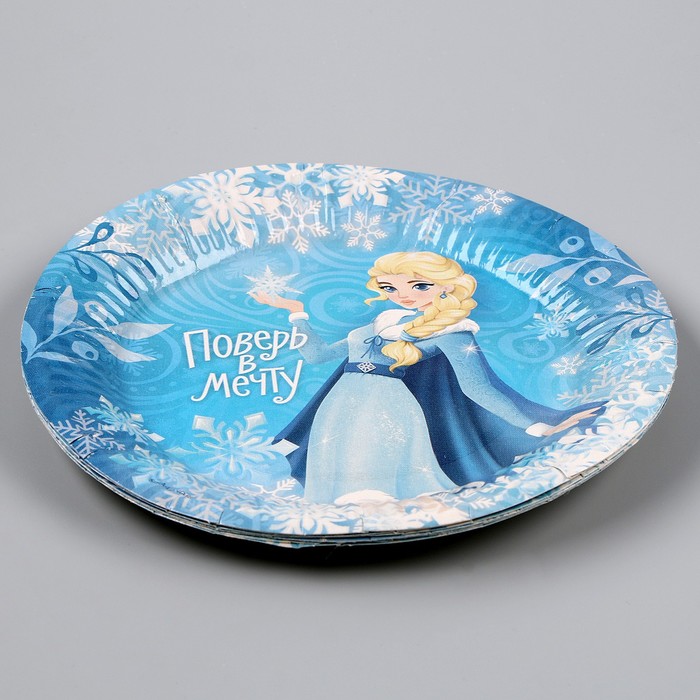 Тарелка одноразовая бумажная "Холодная принцесса" 18 см, набор 6 штук