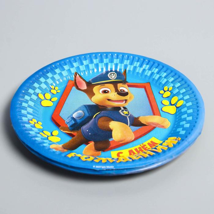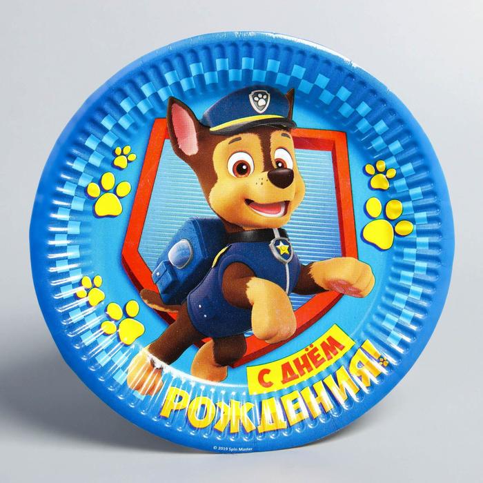 Тарелка одноразовая бумажная "С Днем Рождения!", 18 см, Щенячий патруль