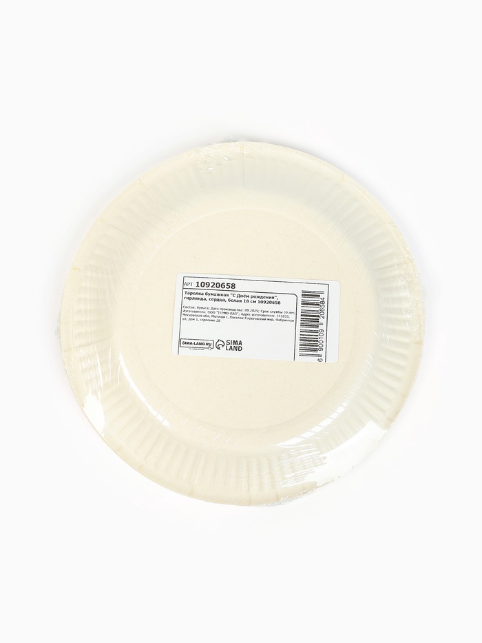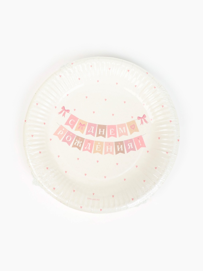 Тарелка одноразовая бумажная «С Днём рождения» гирлянда, белая, 18 см