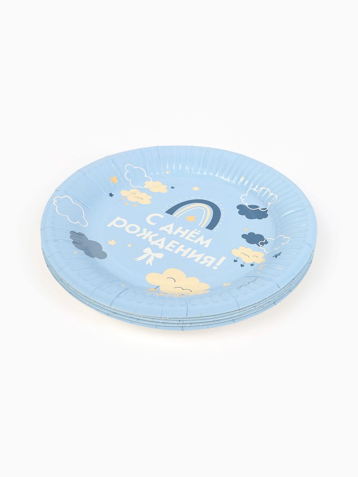 Тарелка одноразовая бумажная «С Днём рождения», голубая, 18 см