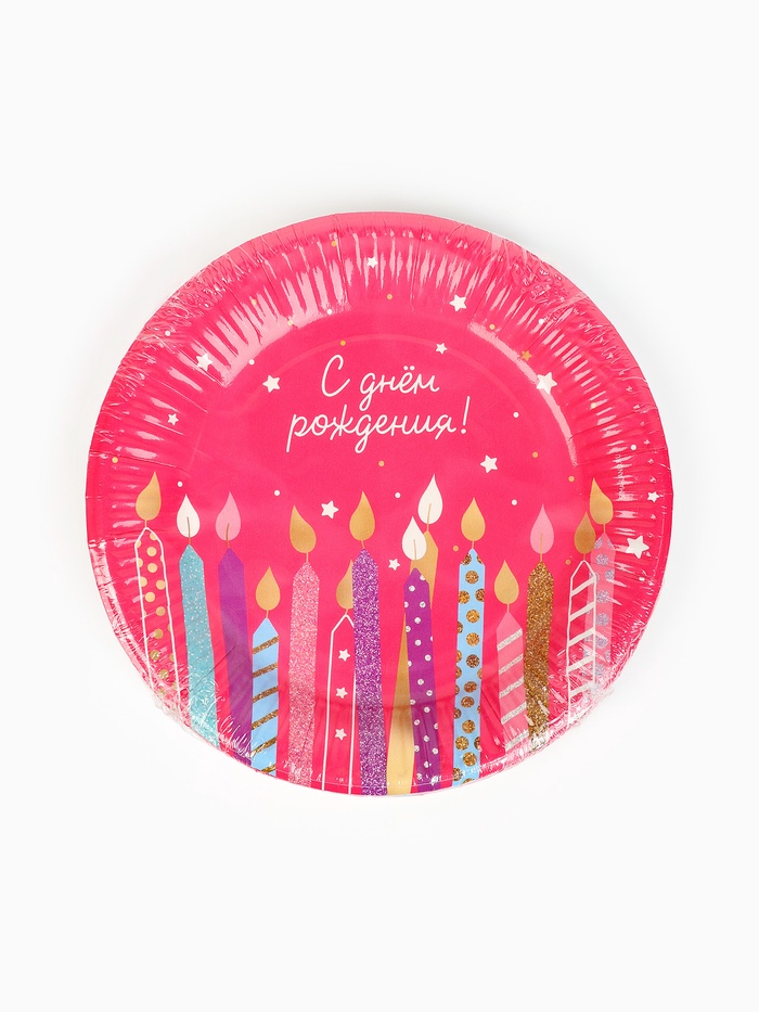 Тарелка одноразовая бумажная «С Днём рождения, свечи», розовая, 18 см