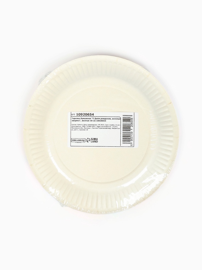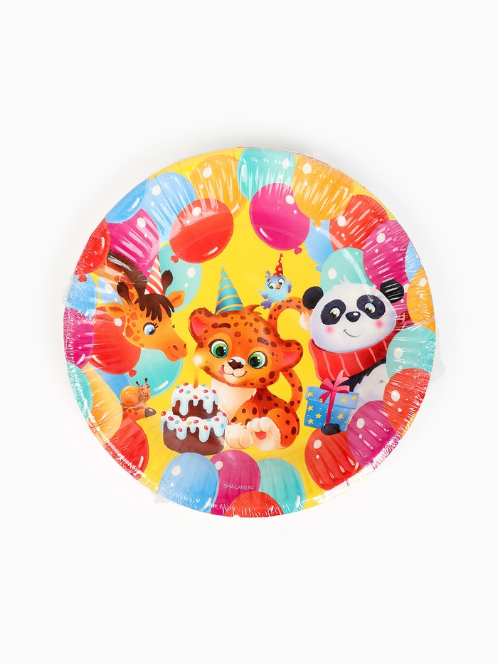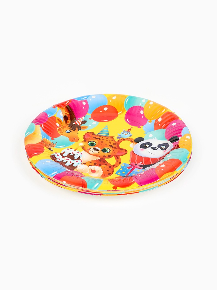 Тарелка одноразовая бумажная «С Днём рождения, весёлые зверята», жёлтая, 18 см