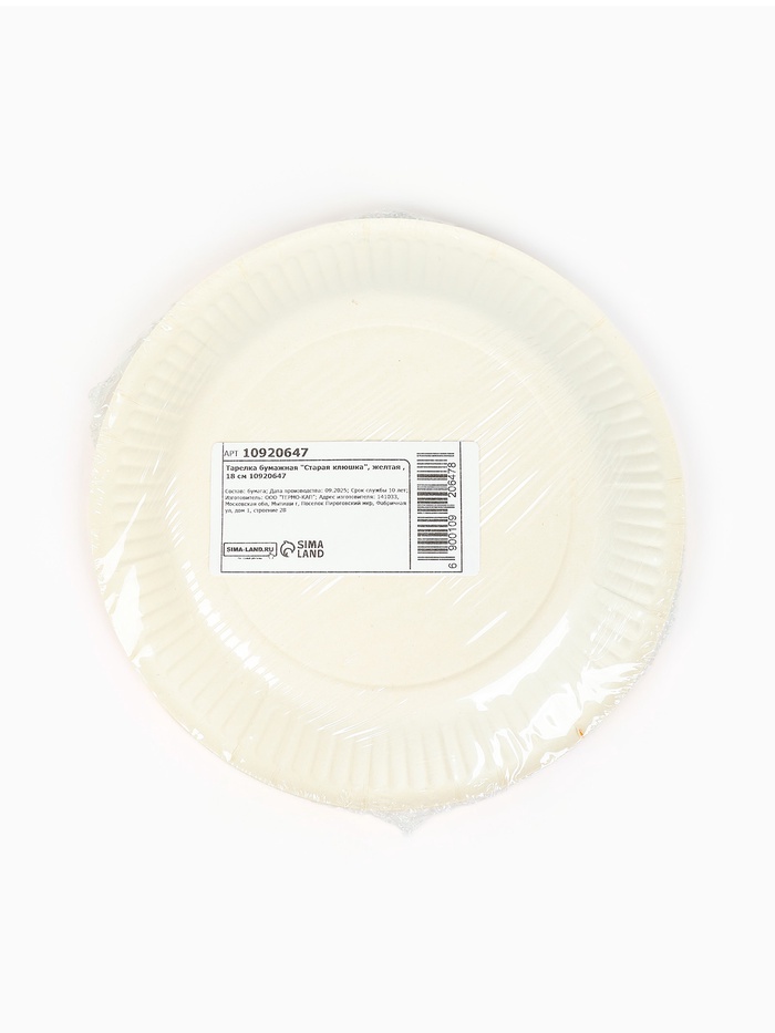 Тарелка одноразовая бумажная «Старая клюшка», жёлтая, 18 см