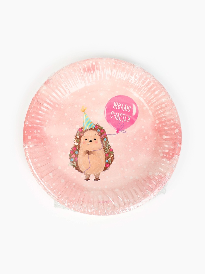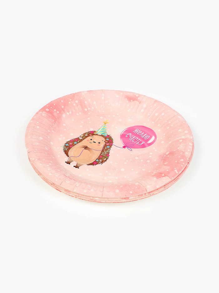 Тарелка одноразовая бумажная «Желаю счастья, ёжик», розовая, 18 см