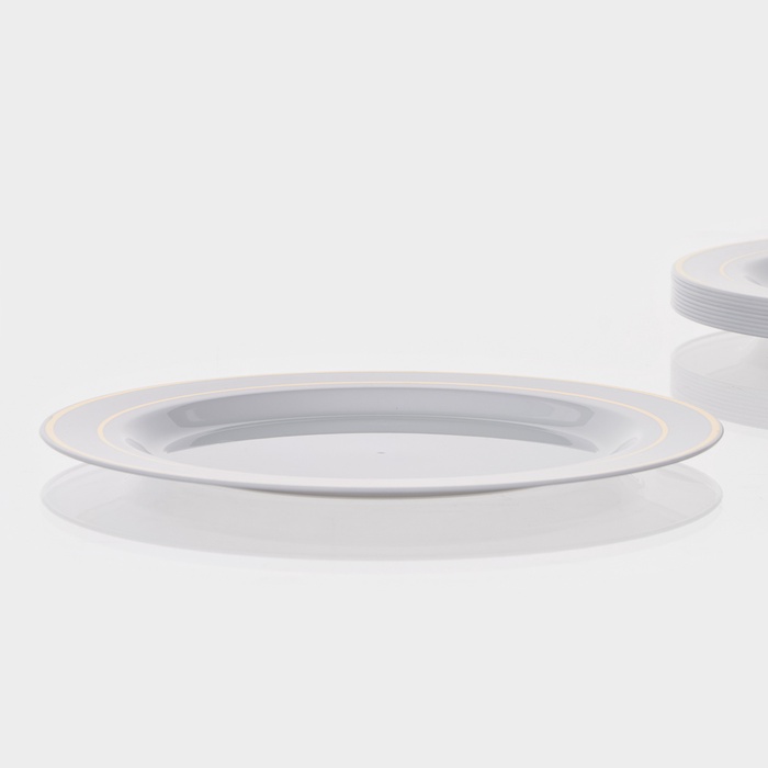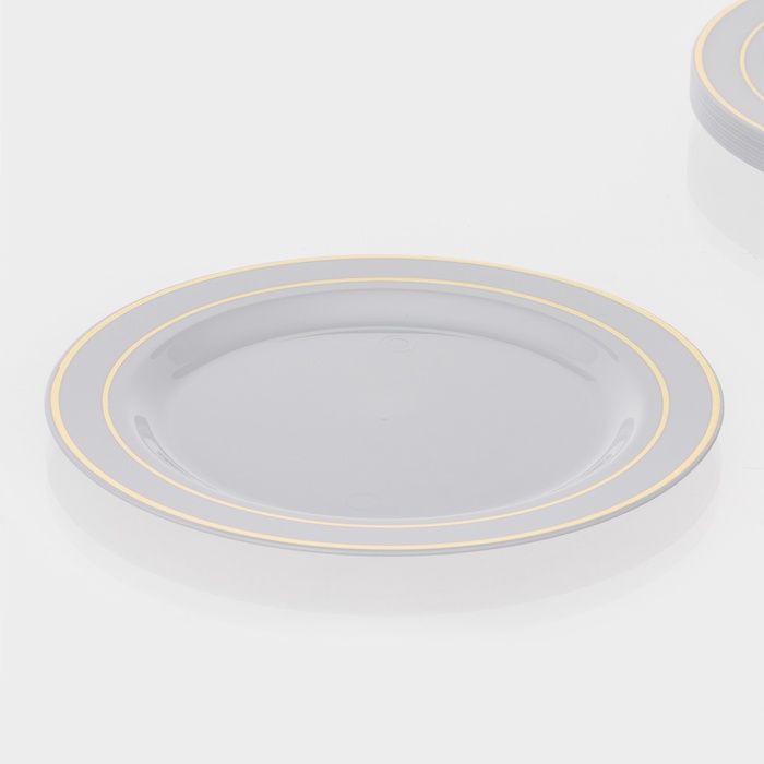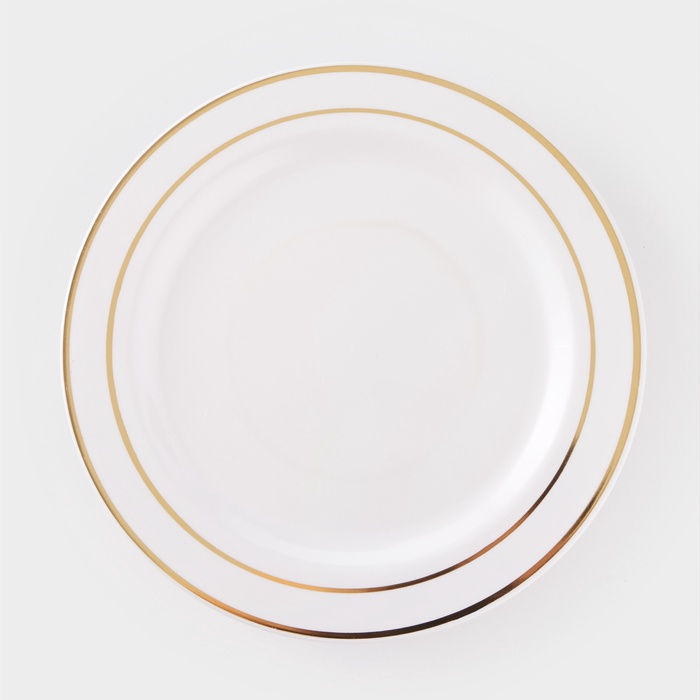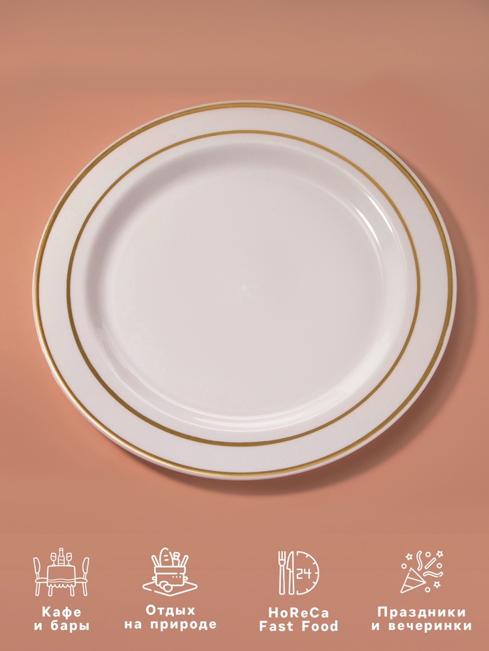 Одноразовая тарелка с золотой каймой (19 см, белая)