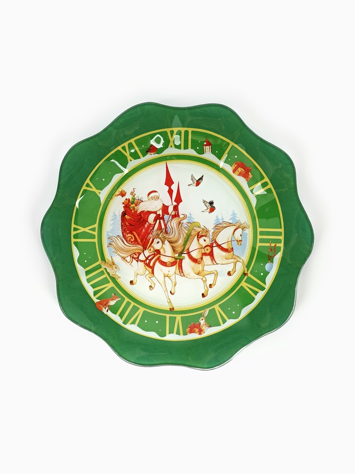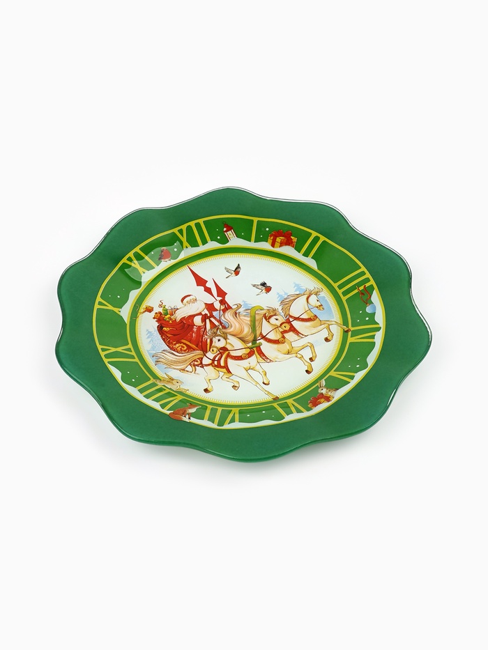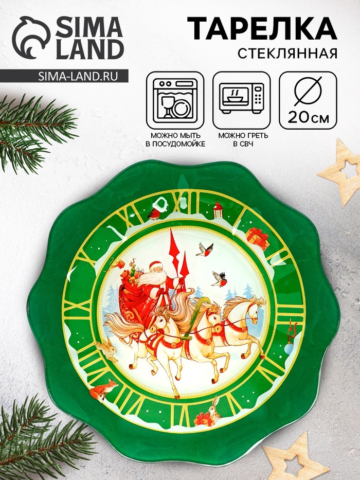 Новогодняя стеклянная тарелка размером 20 см — идеальный выбор для сервировки стола.