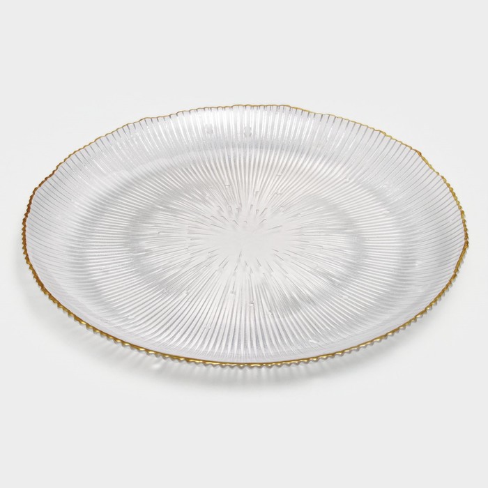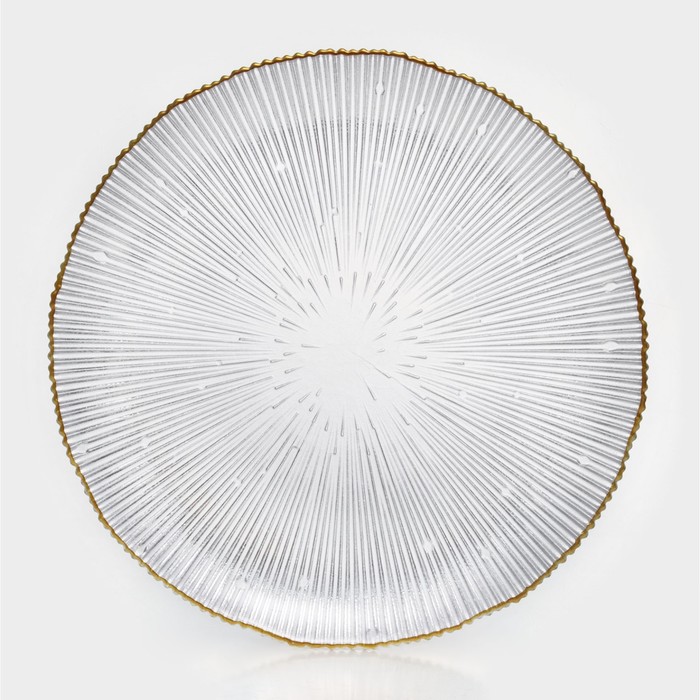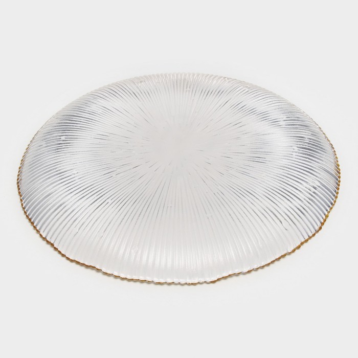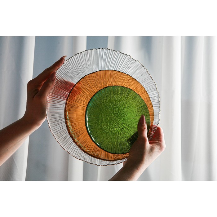 Яркий акцент на столе, сочетающий элегантность и функциональность. Стеклянная тарелка диаметром 27 см с рельефным дизайном — идеальный выбор для сервировки горячих и холодных блюд.