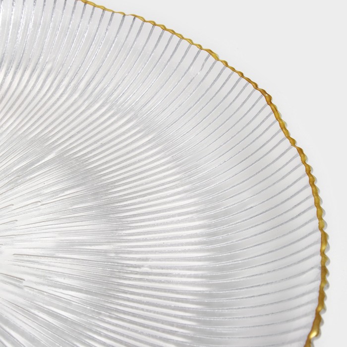 Прозрачное стекло в сочетании с полосками и золотой отводкой придают посуде праздничный вид, делая её заметным элементом любого застолья.