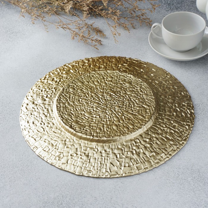Золотая тарелка Magistro «Кринкл» — идеальное дополнение к вашей сервировке стола. Эта тарелка выполнена из высококачественного стекла, что обеспечивает её прочность и долговечность. Благодаря своему стильному дизайну она станет изюминкой вашего стола и добавит роскоши любому мероприятию. Золотая тарелка идеально подходит для сервировки стола на праздниках, свадьбах, корпоративных мероприятиях и других торжественных событиях. Она также будет отличным выбором для повседневной жизни, добавляя изысканности вашим домашним обедам и ужинам.