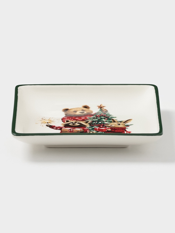 Элегантная новогодняя сервировочная тарелка "Зимний лес" станет прекрасным дополнением к вашему праздничному столу. Сказочные тематические рисунки оживят застолье, перенесут вас в мир снежной сказки и поднимут настроение всем гостям. Квадратная форма и белоснежный оттенок создадут эффектный акцент в праздничной сервировке, а гладкая текстура дарит ощутимое удовольствие в использовании. Это идеальный вариант как для небольших деликатесов, так и для изящных сладостей.