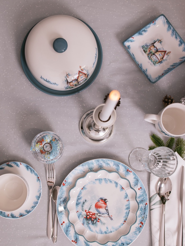 - Деколь с зимними мотивами создаёт праздничное настроение.
