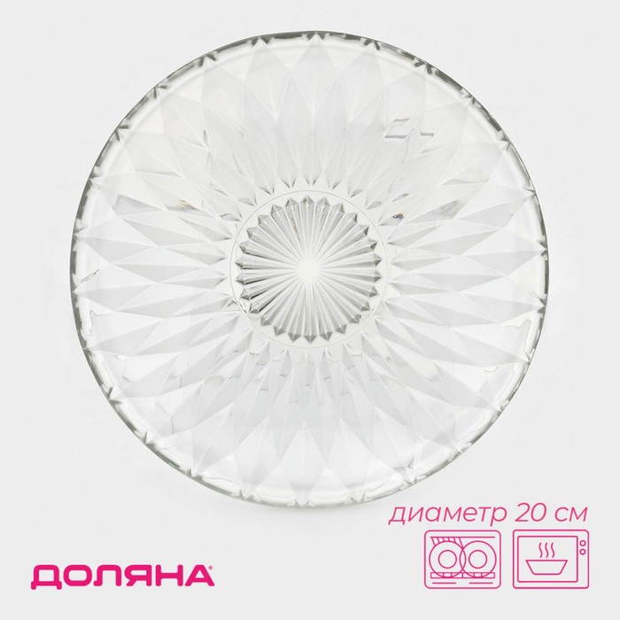 Преимущества товара:- Стеклянная тарелка очень прочная и долговечная. Она не царапается и не бьется при падении, как керамическая или фарфоровая тарелка.
