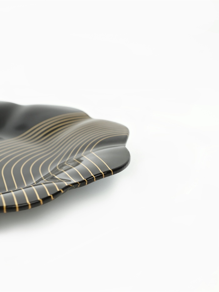 - Современный дизайн: тарелка выполнена в чёрном цвете с золотом, что придаёт ей роскошный вид;